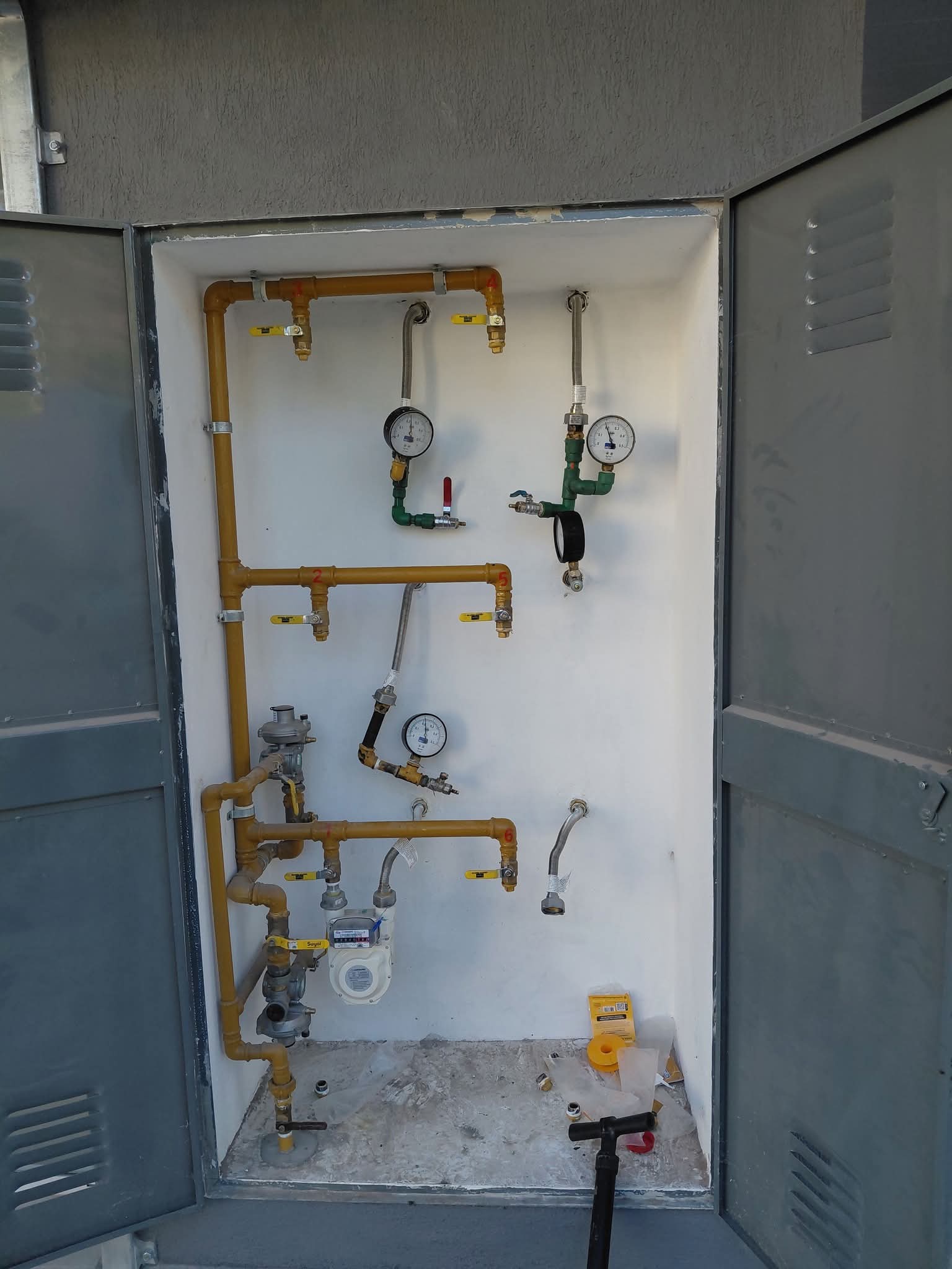 Instalación de reguladores de presión, medidores y nichos reglamentarios.